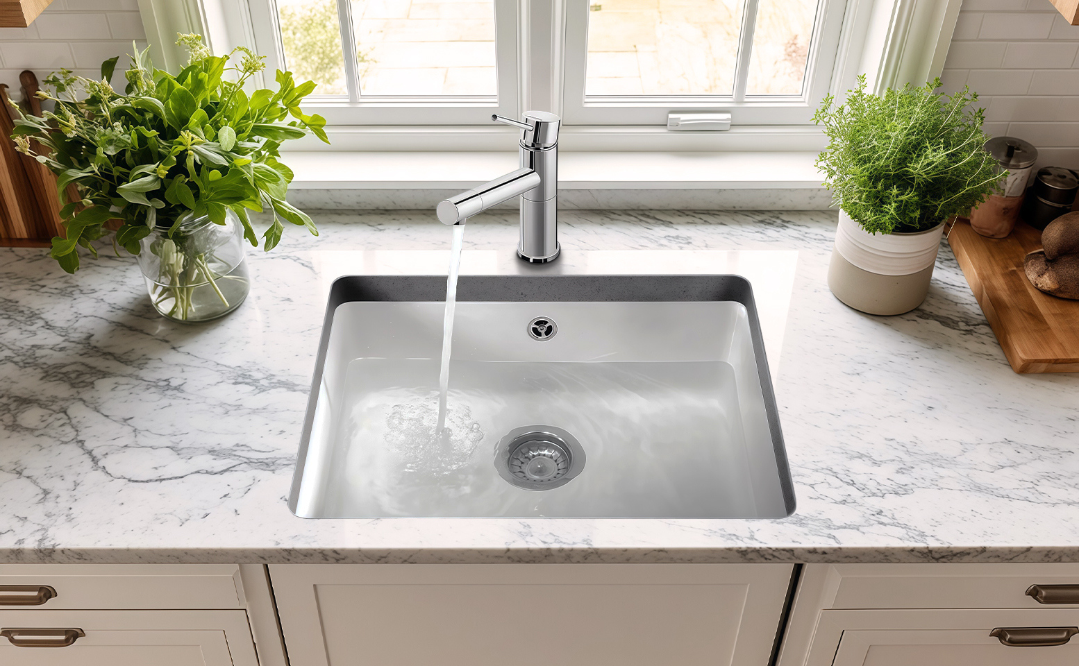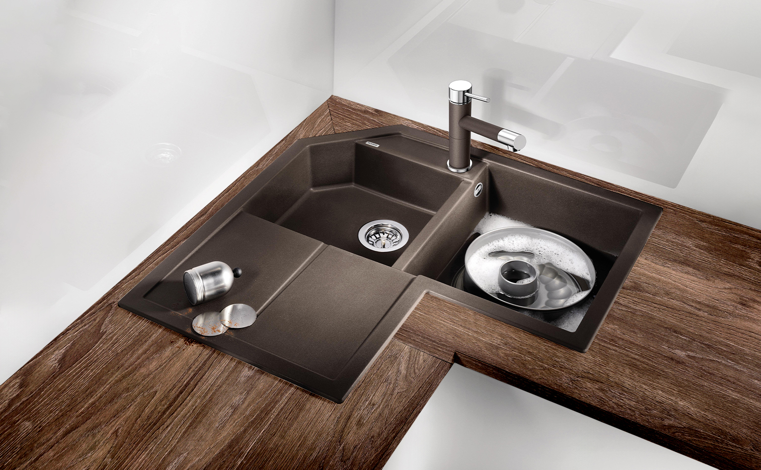 Немецкое производство гарантирует строгий контроль качества на всех этапах изготовления, от подбора сырья до финальной отделки. Продуманная геометрия чаши исключает труднодоступные углы, облегчая чистку и снижая риск накопления загрязнений. Материал демонстрирует устойчивость к бытовым воздействиям и сохраняет однородность цвета после длительной эксплуатации, что особенно важно для светлых решений в кухонной палитре. Благодаря компактным габаритам и аккуратным линиям продукт легко впишется в разные стили — от минимализма до классики, оставаясь функциональным элементом рабочей зоны.