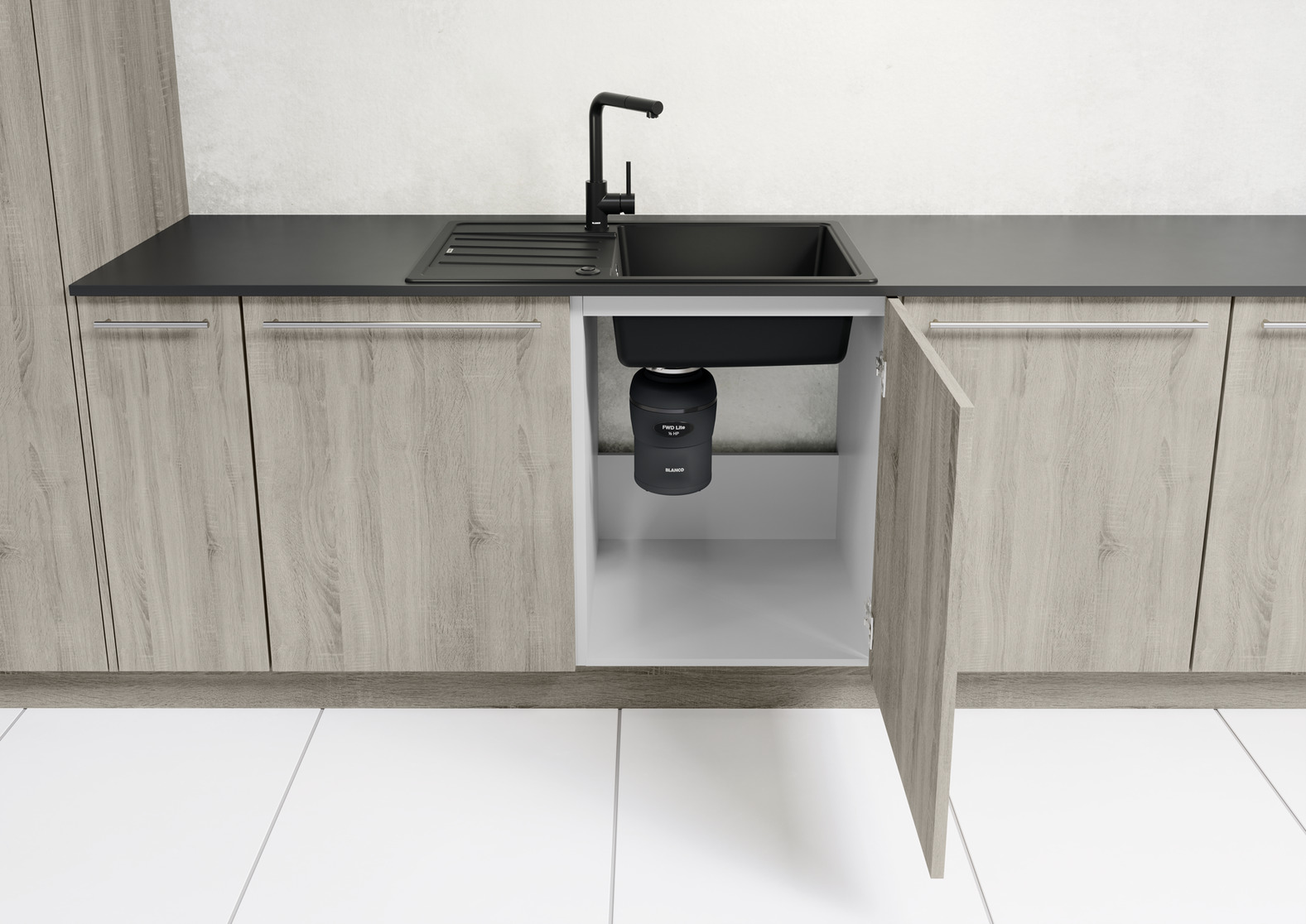 Измельчитель пищевых отходов Blanco FWD Lite — элегантное компактное решение для современной кухни, сочетание сдержанной эстетики и продуманной конструкции. Внешний вид отличается лаконичными формами, ровными линиями и аккуратной отделкой, что позволяет аккуратно вписать прибор в пространство под мойкой без лишних акцентов. Корпус органично сочетается с мебелью, создавая ощущение порядка в зоне мойки; при этом размеры продуманы так, чтобы не мешать эксплуатации шкафов и коммуникаций: высота — 32 см, ширина — 18 см. Применённый стиль ориентирован на практичность, где каждая деталь выдержана в единой визуальной концепции, а компактность не приводит к утрате функциональности. Эргономика обеспечивает простоту монтажа и удобство обслуживания, доступ к внутренним элементам выполнен с учётом быстрой чистки и профилактики без необходимости демонтажа лишних узлов. Материалы корпуса и детали, контактирующие с водой, подобраны с акцентом на долговечность и сопротивляемость коррозии, что положительно отражается на сроке эксплуатации устройства.