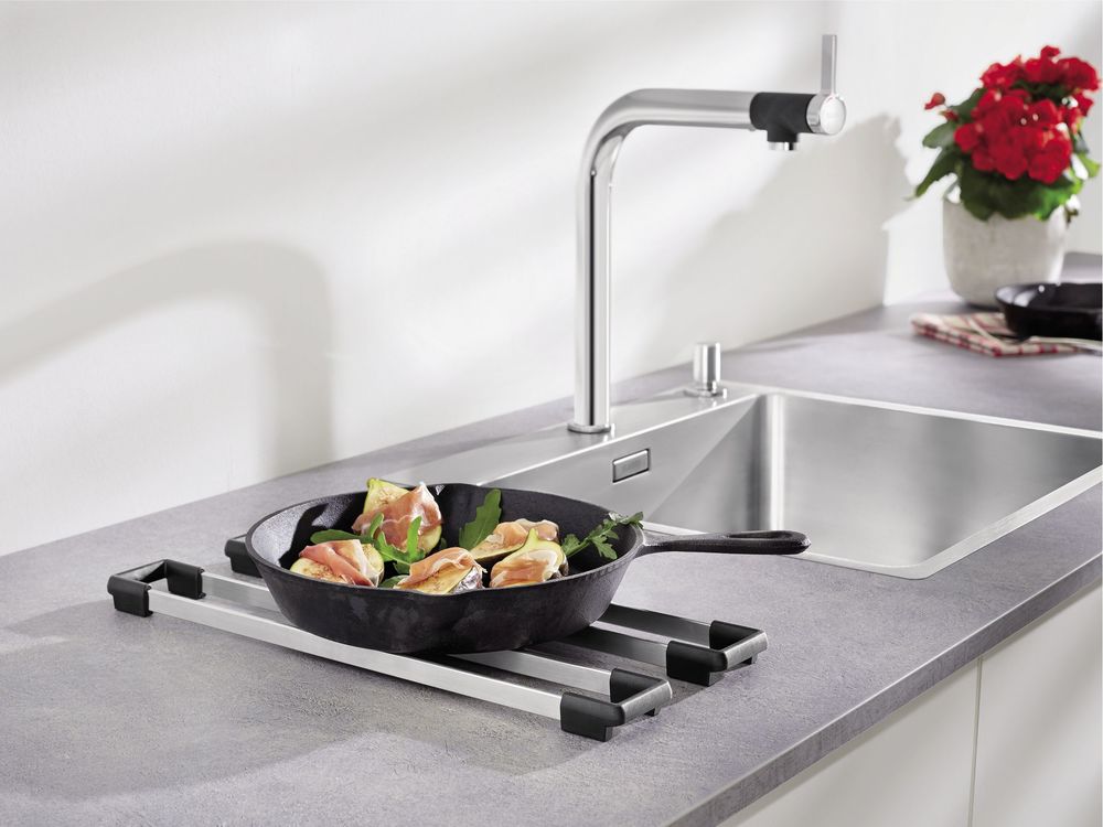 Универсальные держатели Blanco Top — это продуманное решение для организации рабочей зоны, сочетающее лаконичный внешний вид и функциональность. Модель демонстрирует аккуратный прямоугольный силуэт, который легко вписывается в современное кухонное пространство и подчеркивает минималистичный стиль. Изделие выполнено из нержавеющей стали, что обеспечивает стойкость к влаге и механическим воздействиям, а также придает благородный блеск, устойчивый к потере внешнего вида при активном использовании. Конструкция отличается оптимальными габаритами: ширина — 6 см и глубина — 41,6 см, что делает держатель универсальным по назначению и позволяет экономно использовать место на поверхности. Практический дизайн продуман до мелочей: прямоугольная форма упрощает монтаж и способствует аккуратному размещению различных аксессуаров, при этом сохраняя компактность и удобство доступа. Важной особенностью является качество изготовления и точность исполнения деталей, характерные для продукции из Германии, благодаря чему срок эксплуатации заметно увеличивается, а уход сводится к регулярному протиранию мягкой тканью. Эргономика поддерживает быструю замену и перестановку предметов, что удобно при частой смене задач на кухне; изделие подойдет для хранения инструментов, складной посуды или специальных приспособлений, оптимизируя рабочую поверхность. Визуально держатель органично сочетается с техникой и сантехникой в аналогичном декоративном исполнении, позволяя формировать единый ансамбль без лишних переходов в стиле. Коррозионная устойчивость материала снижает риск образования пятен и необходимости применения агрессивной химии, что важно для поддержания гигиены и презентабельного вида. Простота монтажа и аккуратные линии облегчают интеграцию в различные конфигурации интерьера: изделие одинаково хорошо смотрится в угловых, линейных и островных зонах, поддерживая порядок и экономя место. Благодаря продуманной геометрии и качеству поверхности предметы надежно фиксируются, не скользят и не создают лишнего шума при взаимодействии. Для удобства идентификации и сервисного сопровождения указаны артикул 235906 и страна-производитель — Германия, что подтверждает соответствие европейским стандартам качества. В целом, это надежный аксессуар, сочетающий стиль, практичность и долговечность, позволяющий упорядочить пространство и добавить аккуратный акцент в оформлении кухонной рабочей зоны; аксессуары такого уровня отвечают высоким требованиям по эксплуатации и эстетике, что делает покупку разумным вложением в комфорт повседневных задач. Blanco выдерживает строгие критерии, а Top предлагает сбалансированное сочетание формы и назначения, обеспечивая удобство и долговременную службу без лишних усилий.