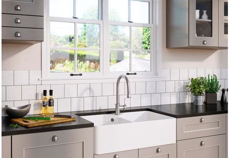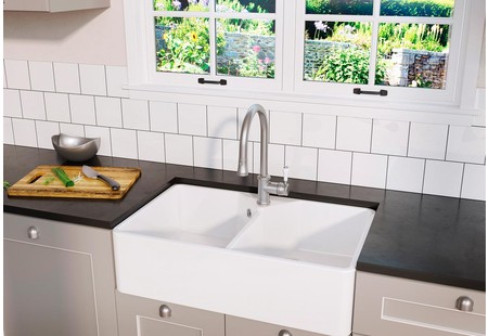 Стильный белый глянец, две удобные чаши, удобство мытья и аккуратный вид на кухне — всё продуманно и надёжно.