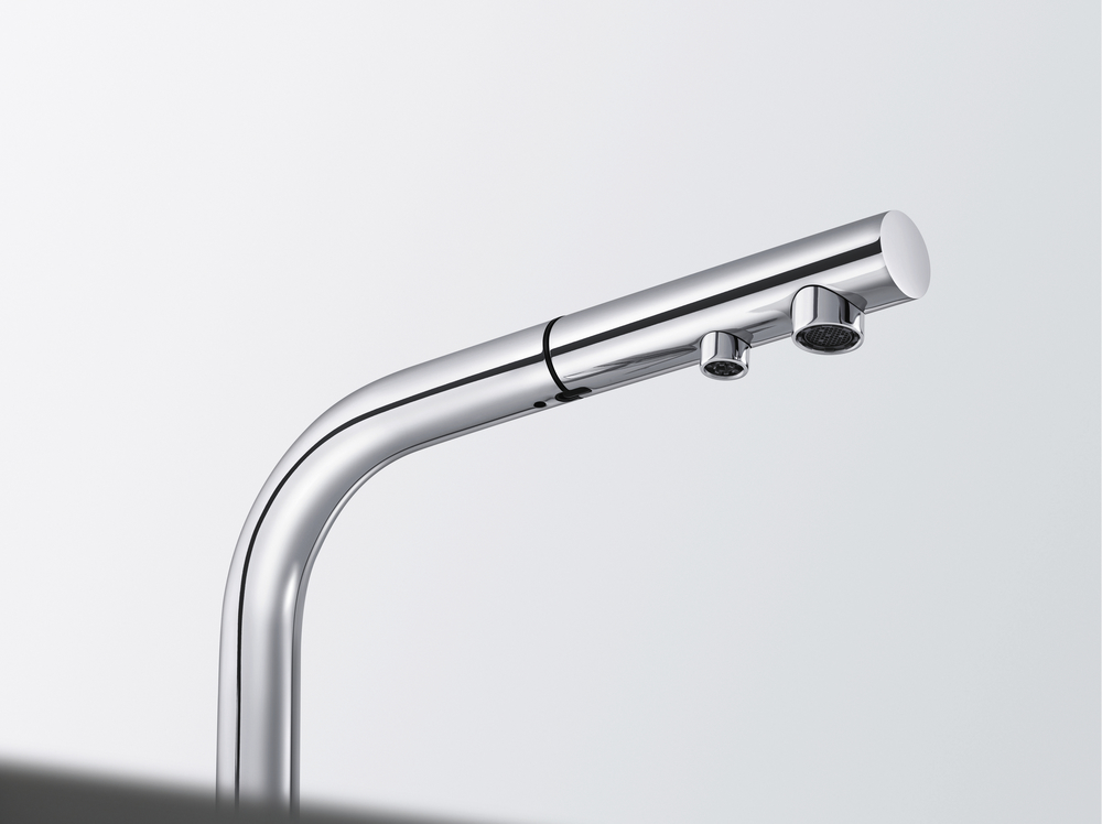 Функциональная составляющая планируется с акцентом на удобство: в устройстве предусмотрен выдвижной излив, позволяющий расширять зону действия для ополаскивания и мытья предметов в раковине; одновременно предусмотрена возможность поворота носика — угол поворота 180° обеспечивает свободу перемещений в пределах рабочей зоны, облегчая работу с двойной мойкой. Аэратор улучшает распространение струи, придавая ей мягкость и экономичность, а дополнительный излив для питьевой воды обеспечивает отдельный канал подачи, отвечающий потребностям безопасного потребления. Надёжное внутреннее устройство базируется на керамическом картридже диаметром 35 мм, который обеспечивает плавность хода рычагов и длительную стабильную работу без протечек и заеданий.
