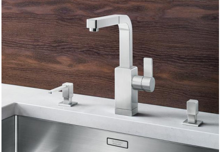 Поворотный излив позволяет поворачивать кран в удобную для пользователя сторону. Обычно угол поворота варьируется от 230 до 360 градусов. Направляется он в нужную сторону механически, т.е. рукой. Такой кран можно установить на мойку с двумя чашами. Для многих потребителей данный вариант удобнее, но за счёт подвижного механизма ломается он быстрее.