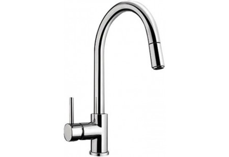 Смесители с выдвижным изливом оснащены специальным шлангом, который способен вытягиваться на значительное расстояние, позволяя использовать его как душ. Шланг может как скрываться в корпусе, так и находиться на виду. В последнем случае его чаще всего поддерживает специальная пружина, придающая ему форму и обеспечивающая устойчивость.