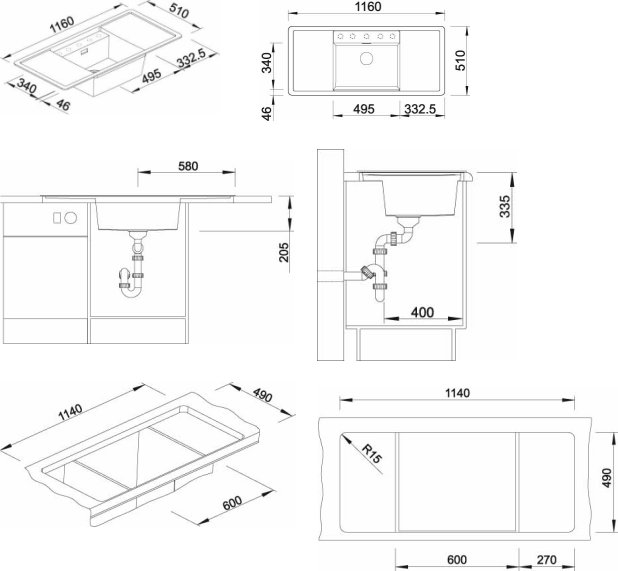 Схема встраивания для мойки Blanco Alaros 6S шампань 516725
