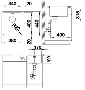 Схема встраивания для мойки Blanco Andano 340-IF нержавеющая сталь полированная 518308