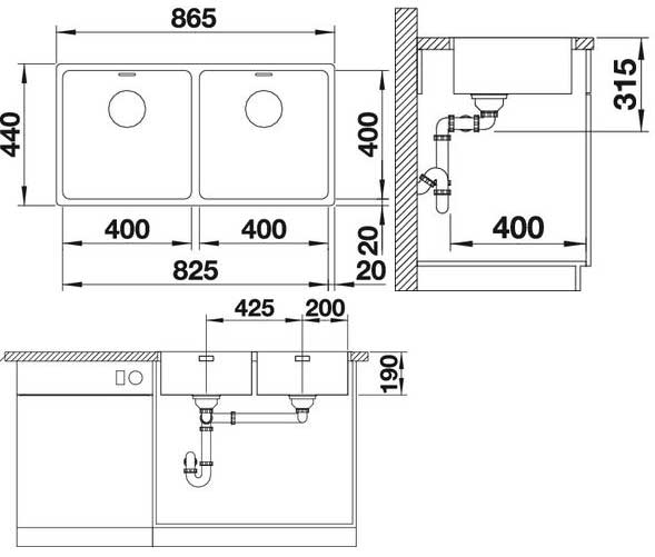 Схема встраивания для мойки Blanco Andano 400/400-IF нержавеющая сталь полированная 518328