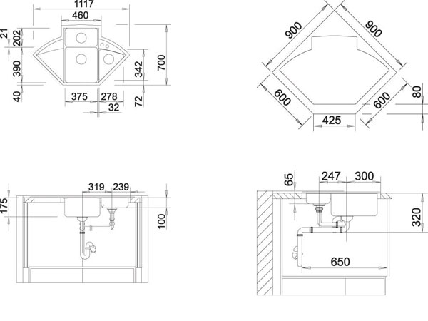 Схема встраивания для мойки Blanco AXIA II 9E алюметаллик чаша справа 516908