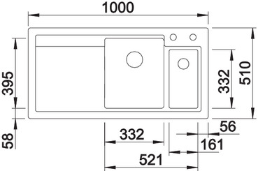 Схема встраивания 1 для мойки Blanco Axon II 6S черный чаша справа 516554