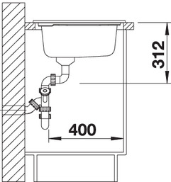 Схема встраивания 2 для мойки Blanco Axon II 6S черный чаша справа 516554