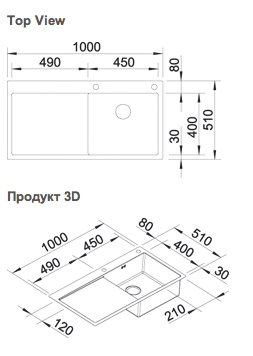Схема встраивания для мойки Blanco Claron 5S-IF/A крыло нержавеющая сталь полированная чаша справа 521625