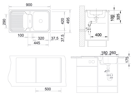 Схема встраивания для мойки Blanco Classic 5 S-F алюметаллик 511683