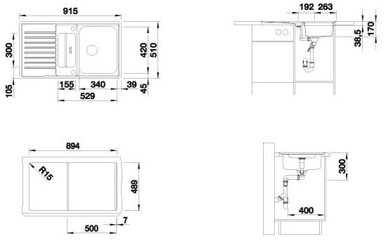 Схема встраивания для мойки Blanco Classic Pro 5 S-IF нержавеющая сталь матовая 516849