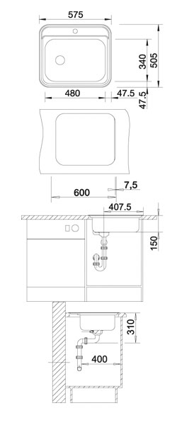 Схема встраивания для мойки Blanco Dana нержавеющая сталь полированная 511900