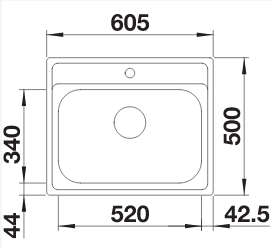 Схема встраивания 1 для мойки Blanco Dana 6 нержавеющая сталь 525323