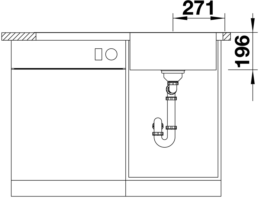 Схема встраивания 1 для мойки Blanco Divon 5S-IF нержавеющая сталь полированная чаша слева 516090