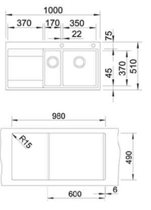 Схема встраивания для мойки Blanco Divon 6S-IF нержавеющая сталь полированная чаша справа 515934
