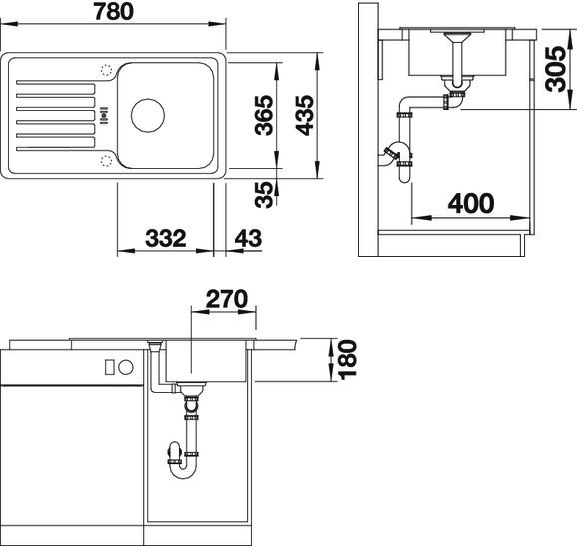 Схема встраивания для мойки Blanco Favos mini антрацит 518186