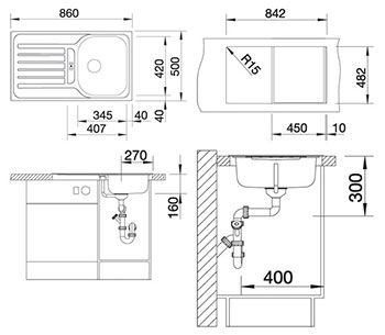 Схема встраивания для мойки Blanco Lantos 45 S нержавеющая сталь 514007
