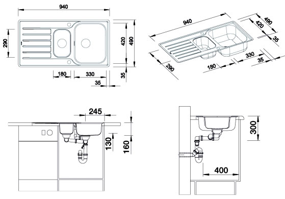 Схема встраивания для мойки Blanco Lantos 6 S-IF нержавеющая сталь 516612