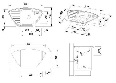 Схема встраивания для мойки Blanco Lantos 9 E нержавеющая сталь чаша справа 516276