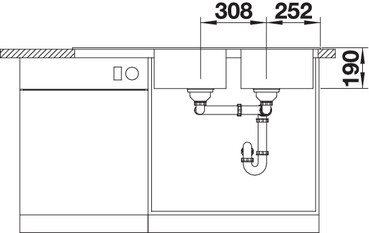 Схема встраивания 3 для мойки Blanco LEGRA 8 S алюметаллик 523164