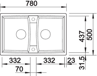 Схема встраивания 1 для мойки Blanco Lexa 8 SILGRANIT PuraDur жемчужный 524963
