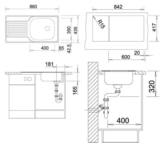 Схема встраивания для мойки Blanco Magnat нержавеющая сталь 511916