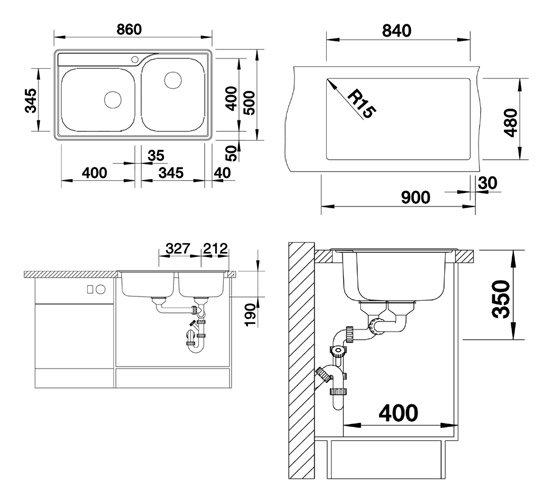 Схема встраивания для мойки Blanco Median 9 нержавеющая сталь полированная 512658
