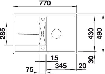 Схема встраивания 1 для мойки Blanco Metra 45 S-F алюметаллик 519082