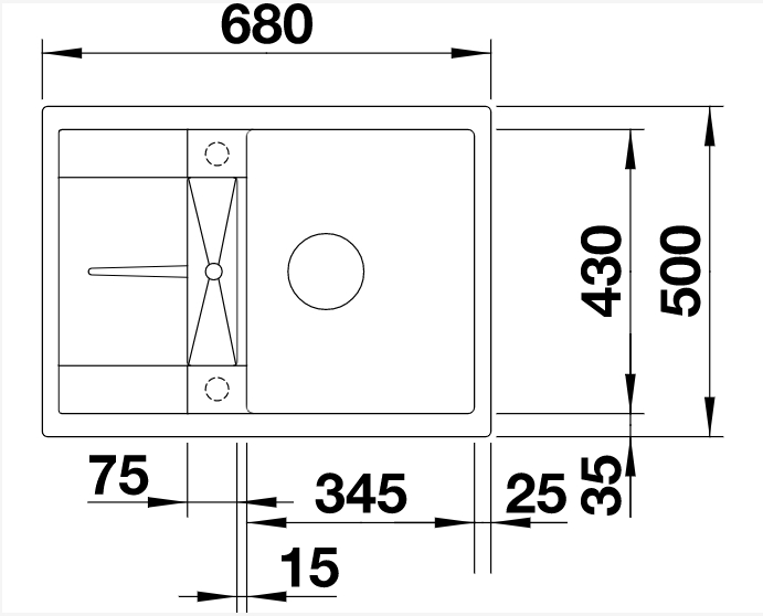 Схема встраивания 1 для мойки Blanco Metra 45S compact жасмин 519577