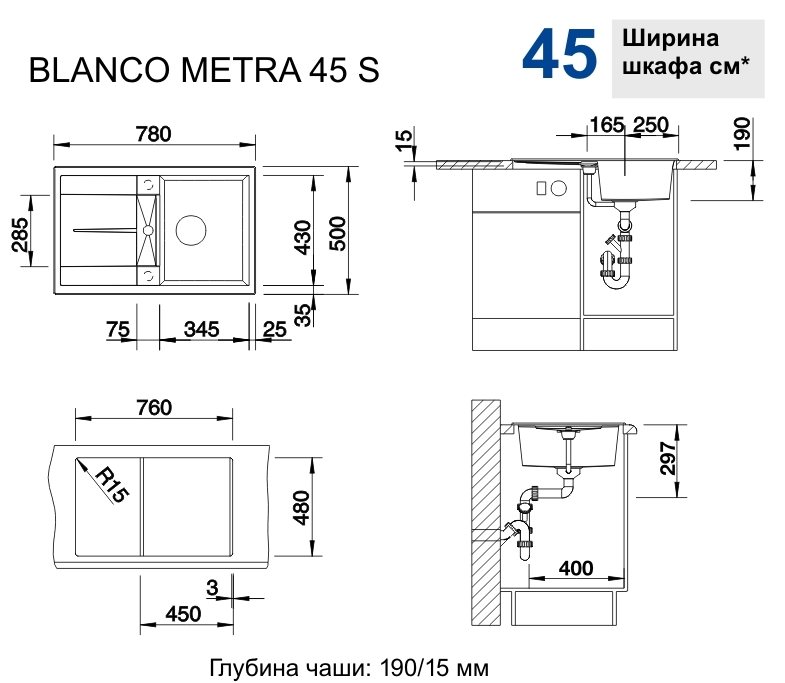 Схема встраивания 5 для мойки Blanco Metra 45S кофе 515038