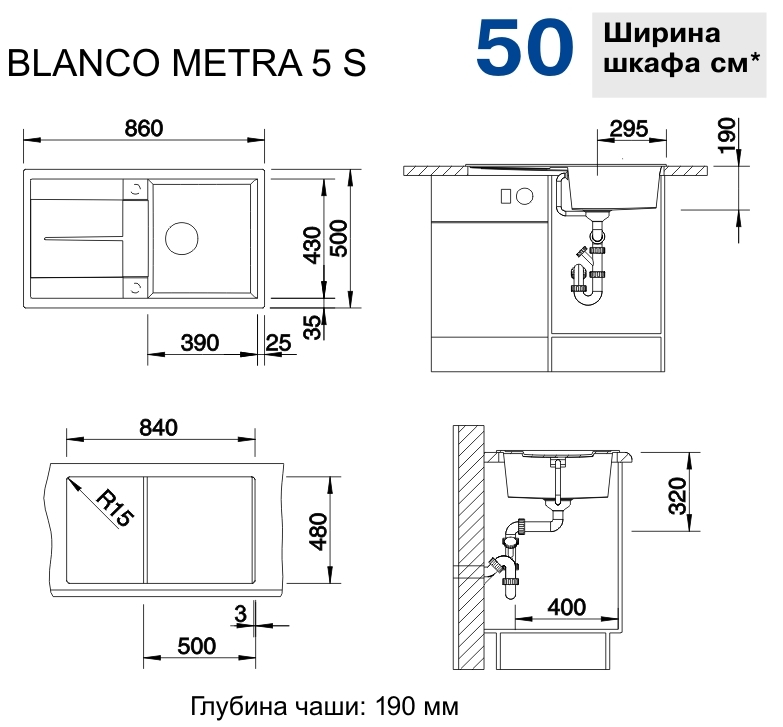 Схема встраивания 4 для мойки Blanco Metra 5S темная скала 518871