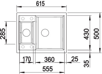 Схема встраивания 1 для мойки Blanco Metra 6 алюметаллик чаша справа 516156