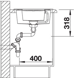 Схема встраивания 2 для мойки Blanco Metra 6S серый бежевый клапан-автомат InFino 517354