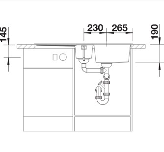 Схема встраивания 3 для мойки Blanco Metra 6S темная скала клапан-автомат InFino 518877