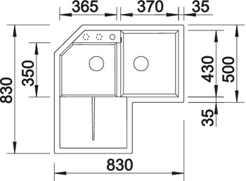 Схема встраивания 1 для мойки Blanco Metra 9 E серый бежевый чаша справа клапан-автомат InFino 517367