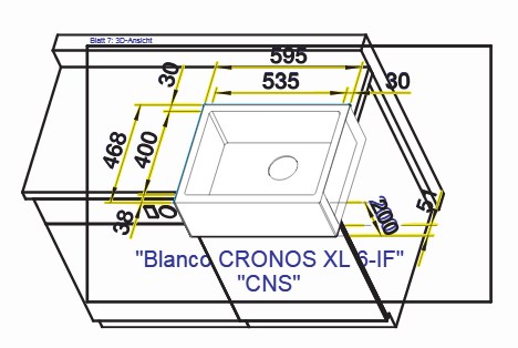 Схема встраивания 1 для мойки Blanco CRONOS XL 6-U нержавеющая сталь полированная клапан-автомат InFino 525024