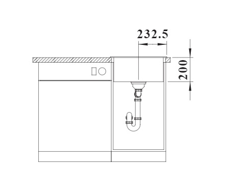 Схема встраивания 2 для мойки Blanco NAYA 45 SILGRANIT алюметаллик клапан-автомат InFino 526573