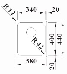 Схема встраивания 1 для мойки Blanco Solis 340-IF нержавеющая сталь полированная клапан-автомат InFino 526116