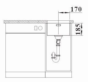 Схема встраивания 3 для мойки Blanco Solis 340-U нержавеющая сталь полированная клапан-автомат InFino 526115