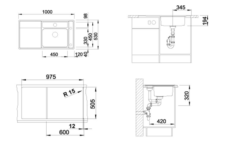 Схема встраивания для мойки Blanco Statura 6 S-IF нержавеющая сталь полированная чаша справа 515869