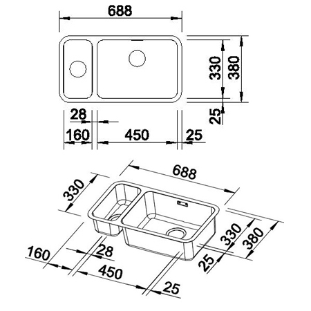 Схема встраивания для мойки Blanco Statura K 640-U нержавеющая сталь полированная чаша справа 514052