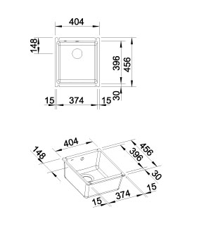 Схема встраивания для мойки Blanco SUBLINE 375-U белый глянцевый 516042