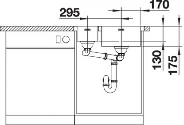 Схема встраивания 2 для мойки Blanco Supra 340/180-IF нержавеющая сталь чаша справа 523366