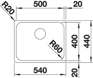 Схема встраивания 1 для мойки Blanco Supra 500-IF нержавеющая сталь полированная 526351