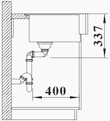 Схема встраивания 2 для мойки Blanco Vintera XL 9-UF серый бежевый клапан-автомат InFino 526107