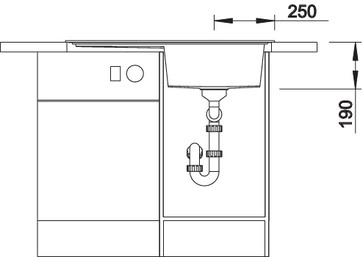Схема встраивания 3 для мойки Blanco Zenar 45 S темная скала чаша слева 519262