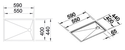 Схема встраивания для мойки Blanco Zerox 550-T-IF/N нержавеющая сталь полированная 517275