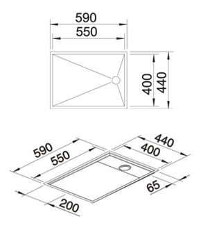 Схема встраивания для мойки Blanco Zerox 550-T-U нержавеющая сталь полированная клапан-автомат InFino 521561