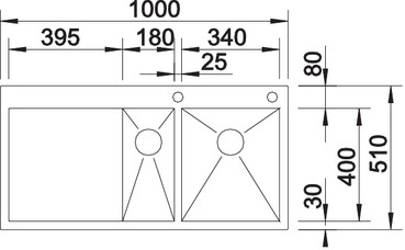 Схема встраивания для мойки Blanco Zerox 6S-IF/A нержавеющая сталь полированная чаша справа клапан-автомат InFino 521643